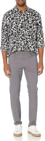 These slim-fit men’s pants offer a modern look with their fitted design through the hip and thigh, complemented by a tapered leg. Sitting just below the waist, these men’s pants are crafted from lightweight stretch cotton twill, making them ideal for everyday wear. The classic 5-pocket styling draws inspiration from traditional jeans, providing versatility and functionality as men’s casual pants. The robust construction, featuring a shank button closure, rivets, and a reliable zipper fly, adds to their appeal as work pants for men. Designed for both men’s business casual and men casual pants occasions, they seamlessly blend into both settings. Available in various sizes, including options for shorter men, these men’s slim fit pants offer a solution for every build.