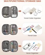 Waterproof Work Backpack : Size 17″H x 13″L x 5″W. Electronics Organizer Case Size: 5”L x 5”H x 2”W. The laptop bag backpack mades with water-resistant polyester fabric, is perfect for working for teacher, doctor, nurse, office commuter. And this back pack comes with a dust bag for storage.