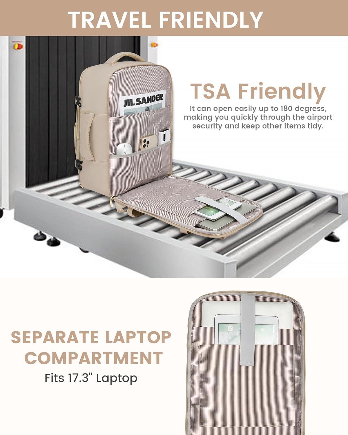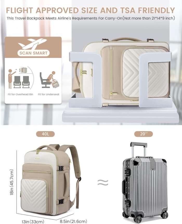 【Airline Approved &TSA Friendly】Size: 18*8.5*12.5 inch (L x W x H). Compact and practical, this carry on backpack fits under the seat or in the overhead compartment, approved by Spirit, Frontier, JetBlue, and other budget-friendly airlines. It can be opened freely 90-180 degree during the airport security.