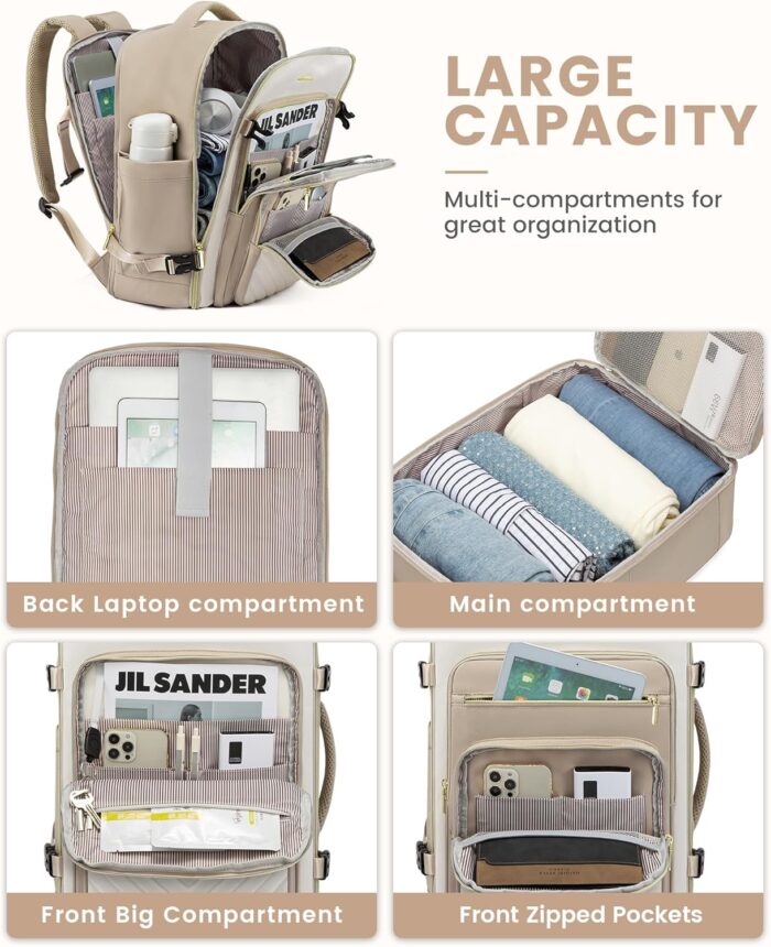 【Durable & Comfortable】Built to withstand the challenges of travel, this carry on backpack is made from tear-resistant, water-resistant, and abrasion-resistant materials. It also has adjustable shoulder straps, a padded back panel, and shoulder straps, ensuring comfort during long trips; a travel essential.