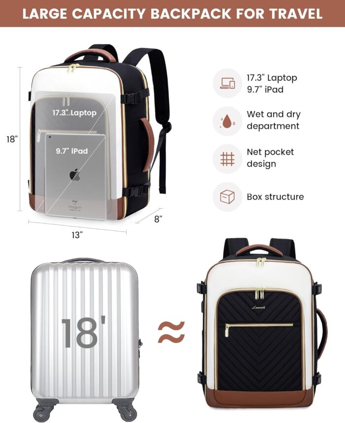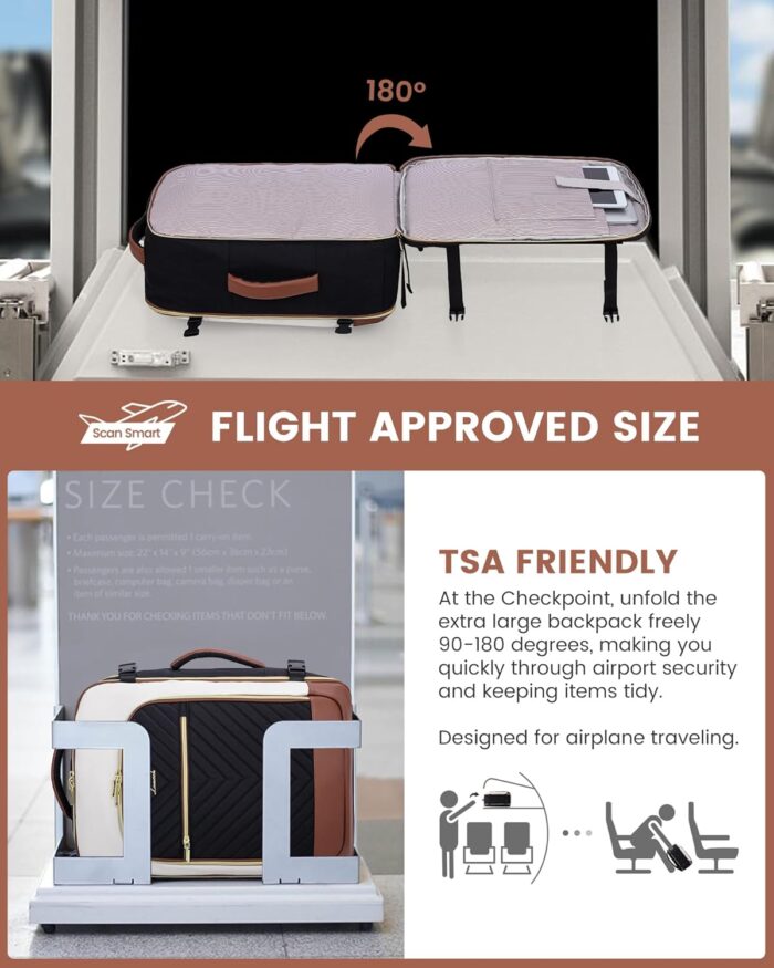 【Airline Approved Travel Bag】Size :18*13.5*8″, this carry on backpack for women meets most international carry-on requirements, such as Spirit, Frontier, Jet Blue, Easy Jet, and other budget-friendly airlines. Fits under the seat or in the overhead compartment, making it the perfect personal item for air travel.
