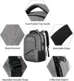 USB Charging Port and Luggage Sleeve: 17 inch sturdy computer backpack for men with external USB charger port and built in charging cable can conveniently charge your cell phone, tablet and other electronic devices while walking. Featuring the trolley belt on its breathable back, business traveler could fit large backpack right on the luggage suitcase, which free your hands