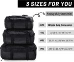 Water Repellent Duffel —- Built from heavy-duty water resistant tarpaulin and reinforced double layered tear-resistant floor panel, designed for harsh environments and features huge capacity to hold your workout gear or your trip stuffs. Best for hiking, camping, climbing, gym sports, car trip, traveling or other outdoor adventures