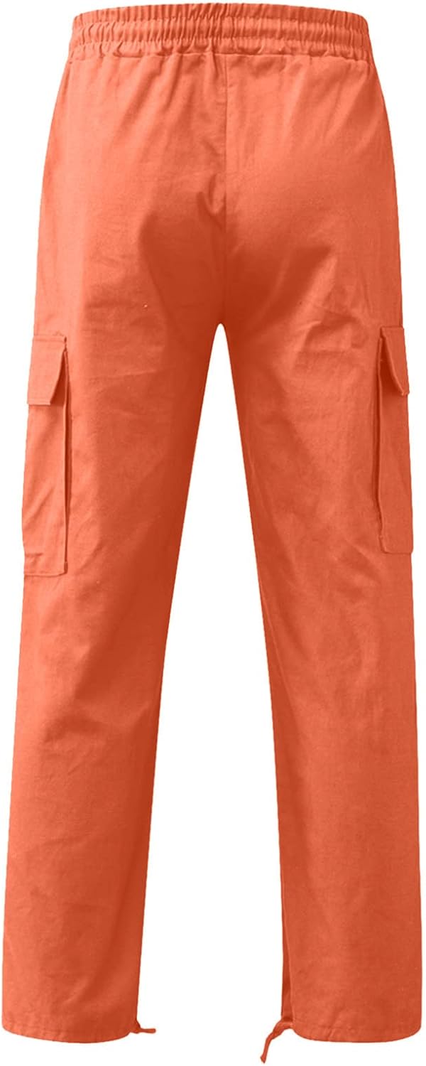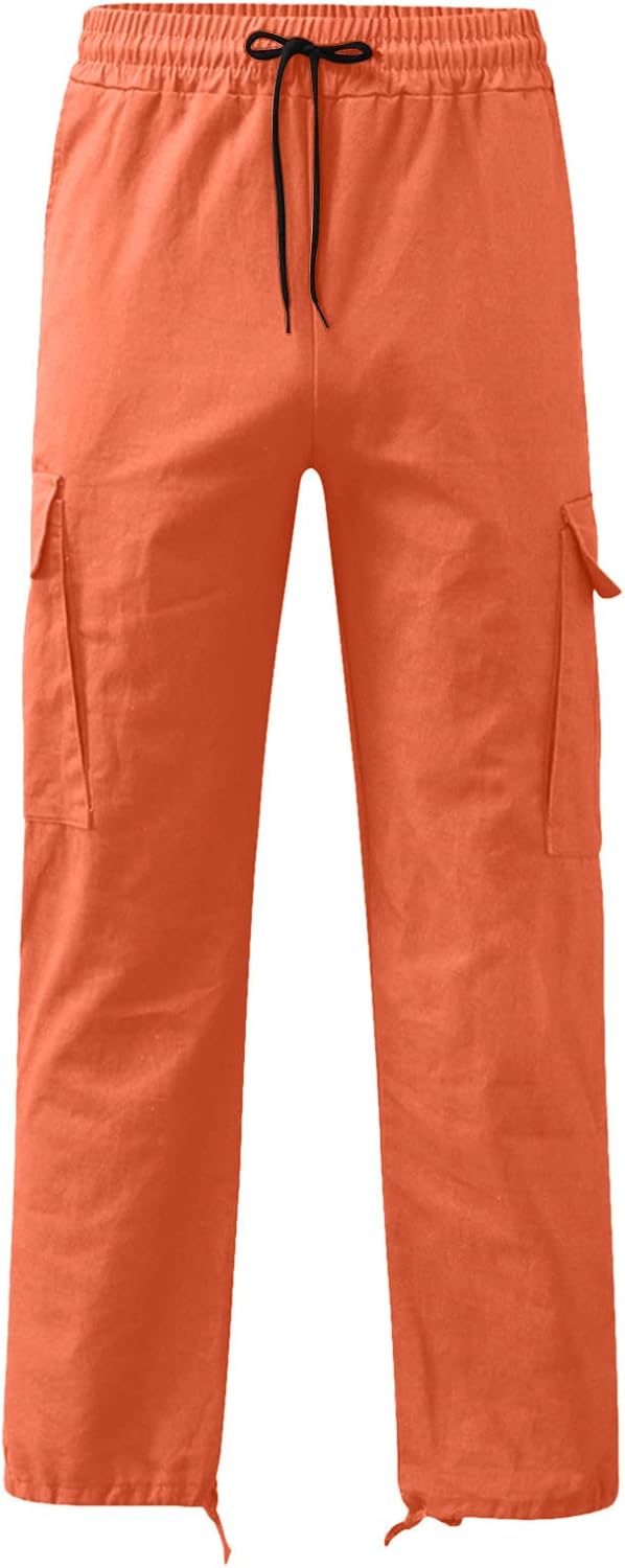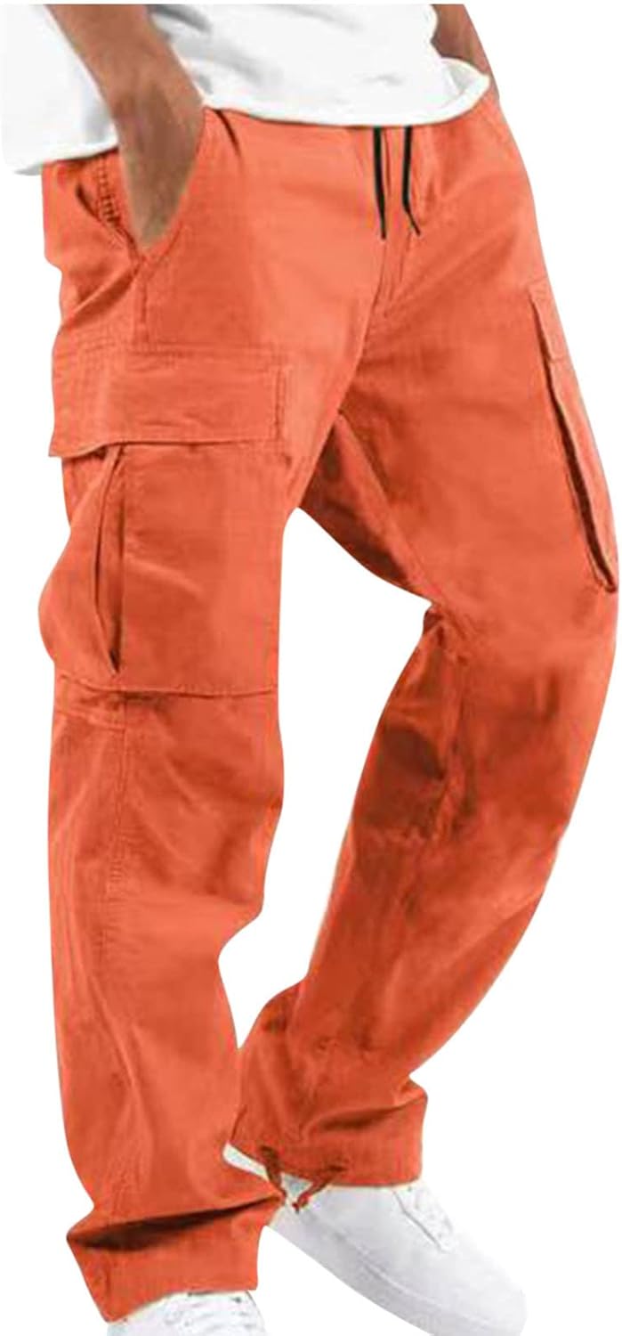 Muscularfit Cargo Pants for Men Big and Tall Elastic Waist Cotton Sweatpants Causal Solid Multi Pockets Joggers Athletic Pant