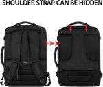 Convenient Design: This carry on travel backpack is designed with hideaway padded shoulder straps which can be hidden away in the zippered back panel when not using. Two padded handles on the topmost and the side are designed to lift the backpack from multiple angles, provide you more flexible carrying experience such as carrying like a suitcase or a backpack. A luggage strap on the back is designed to fit on the luggage’s handle, for easier carry on international travel